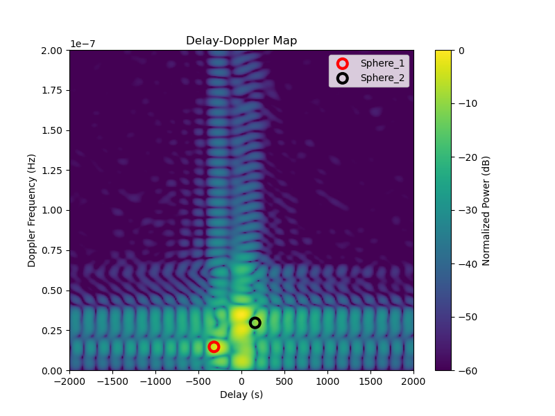 Executing the above snippet produces the following delay-Doppler spectrum.